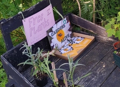 • Give out free plants. Clare and Jude over propagate and ask for local donations as well, which are left outside her house for people to take and posted on social media what’s there.