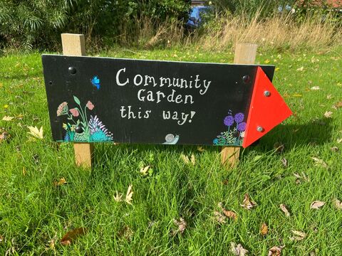 The community garden signs above are also painted chalkboards from Thornbury Community Permaculture Project. The site is nestled at the back of a local care home, so was often overlooked by people passing by. The large sign at the entrance and smaller signs directing people where to go highlighted the community garden. There are also smaller beautifully illustrated signs showcasing the compost and sensory bed. The signs were created by one of the volunteers, Torr.
