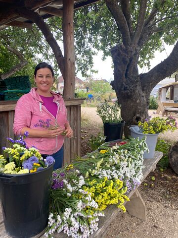 The flowers will be used for site events, bouquets, commissioned arrangements, and sales at our on-site veg stall. One bed is already established with native perennials, while two more will be planted with a mix of annuals and perennials.