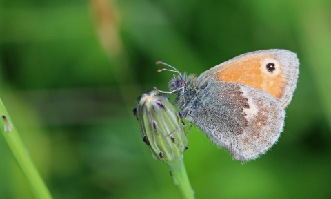 The small heath is the smallest of our brown butterflies and has a fluttering flight. It favours heathlands, as its name suggests, as well as other sunny habitats.